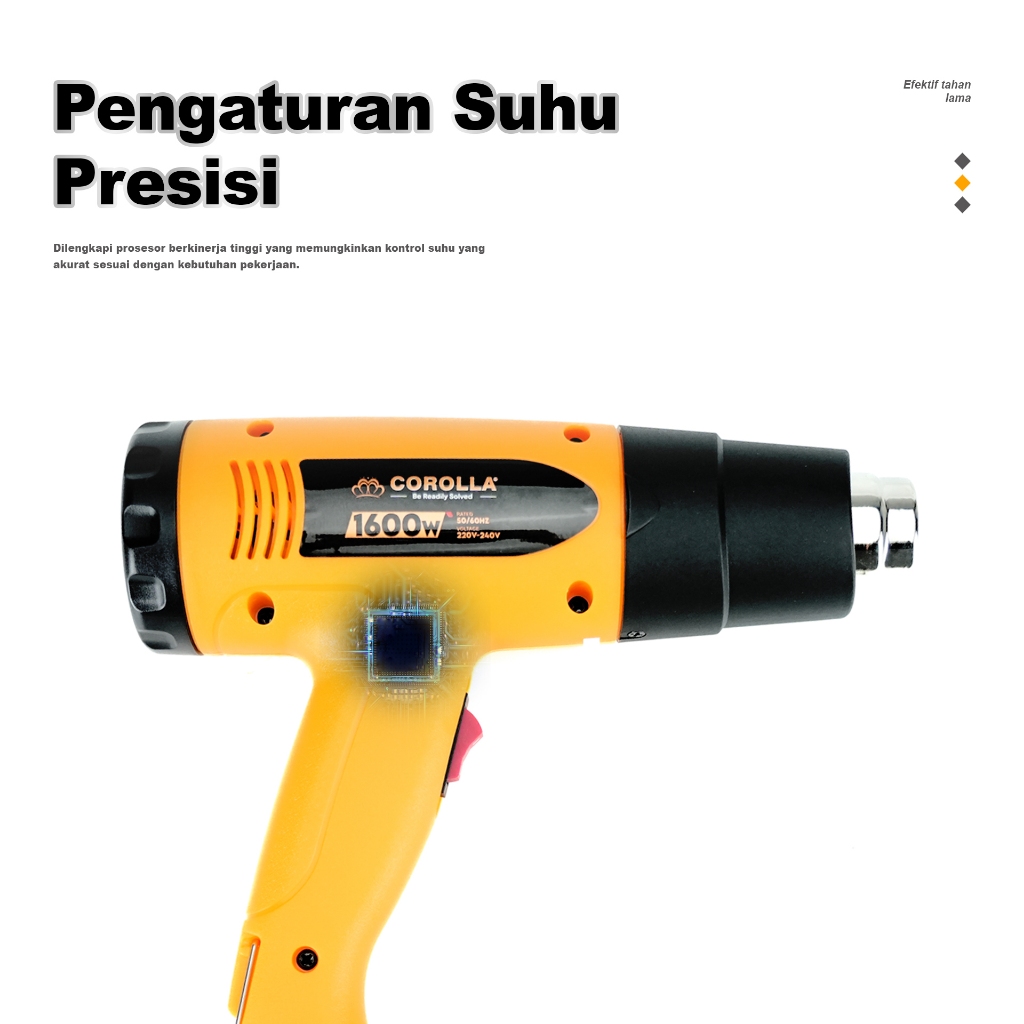Corolla Heat Gun 1600W Dryer Heat Solder Thermal Heat Gun 2 tingkat panas Pemasangan kaca film mobil