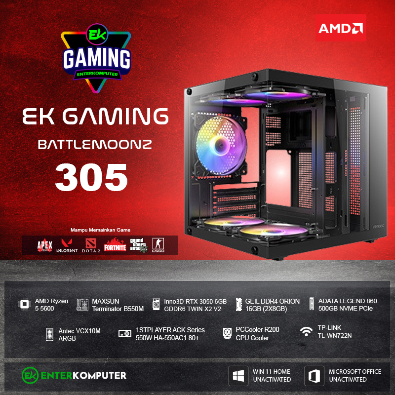 PC Rakitan EK Gaming BattleMoonz 305 - Ryzen 5 RTX 3050 - Enter Komputer