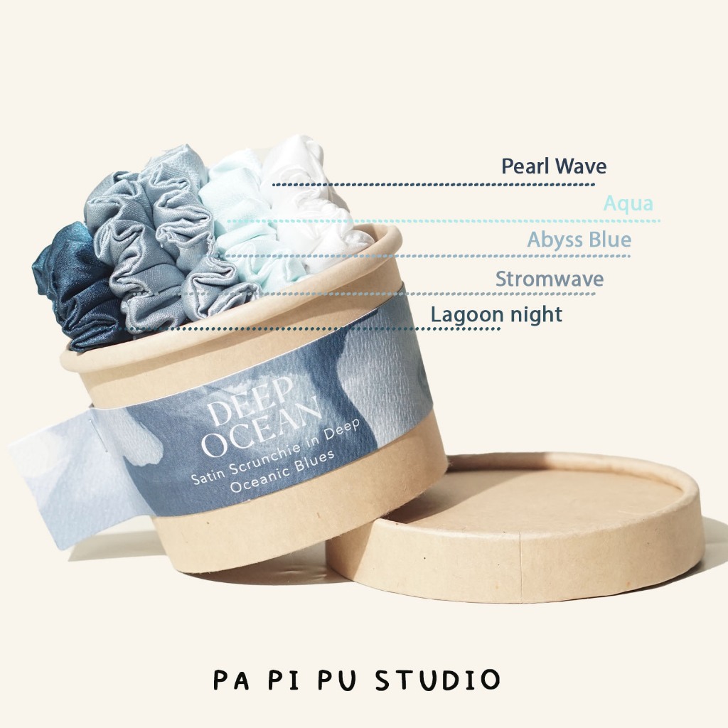 PAPIPU STUDIO SCRUNCHIES SATIN IKAT RAMBUT DEEP OCEAN SERIES