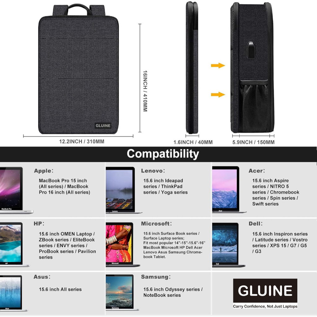 GLUINE# TAS LAPTOP MODERN MULTIFUNGSI Ransel Waterproof with USB Port Unisex Size 14 - 15.6 inch