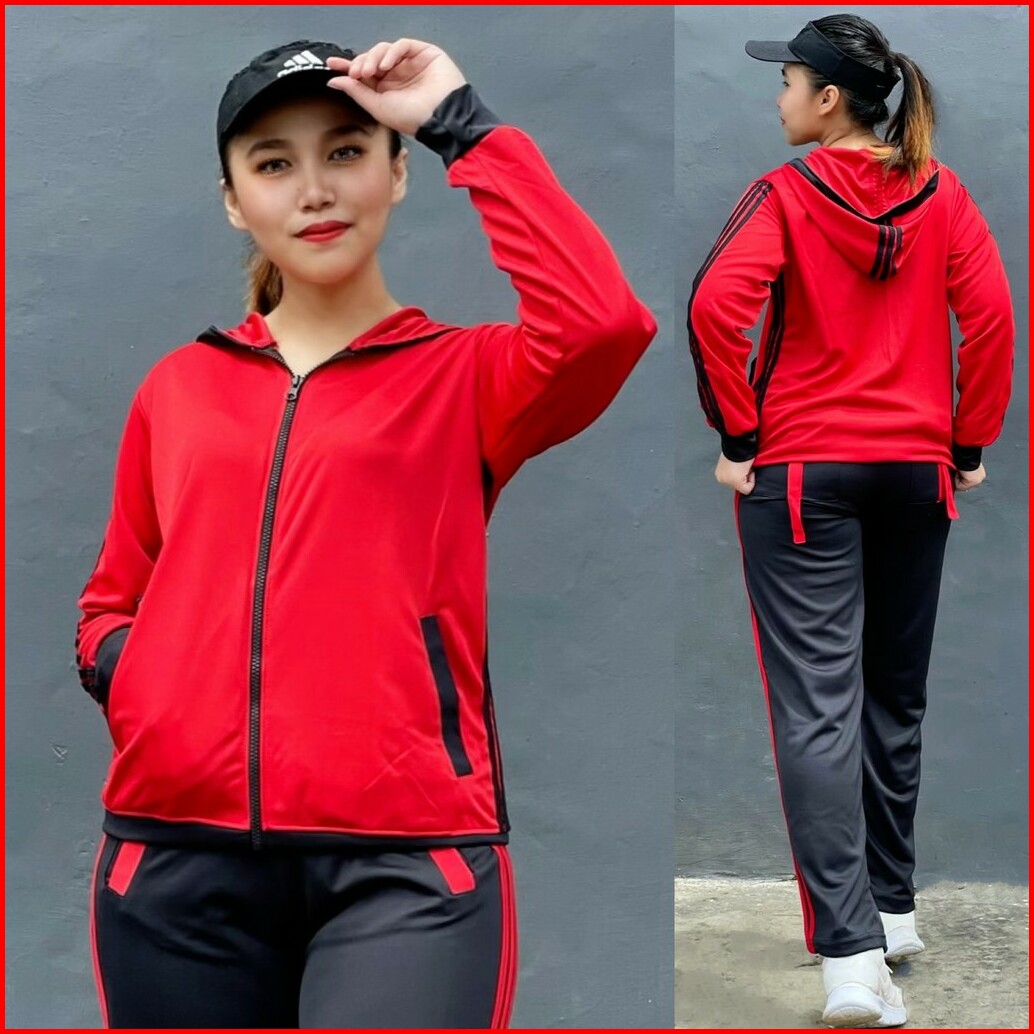 Baju Senam Stelan Aerobic Zumba Olahraga Fitness Hijab Muslim Panjang Training Merah Hitam