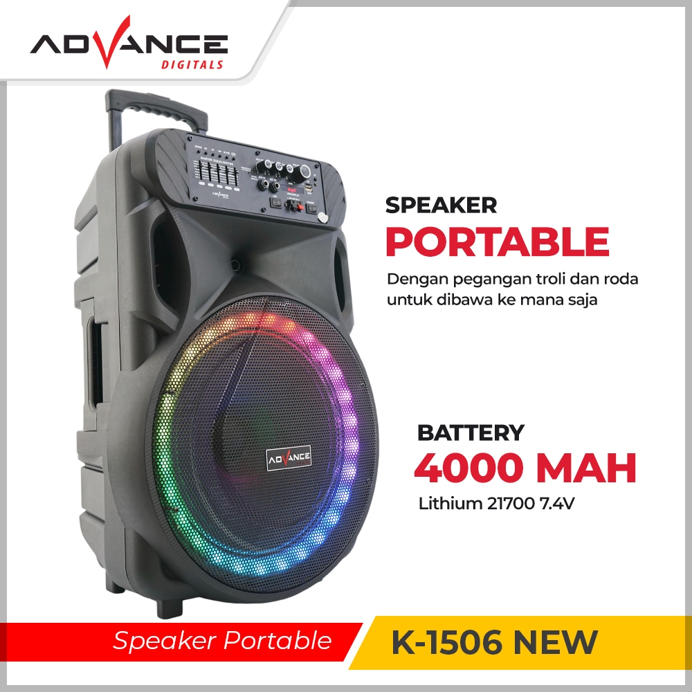 Advance K-1506 Speaker Bluetooth Portable 15 Inch Free 2 Bh Mic Wireless