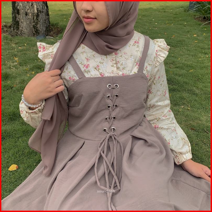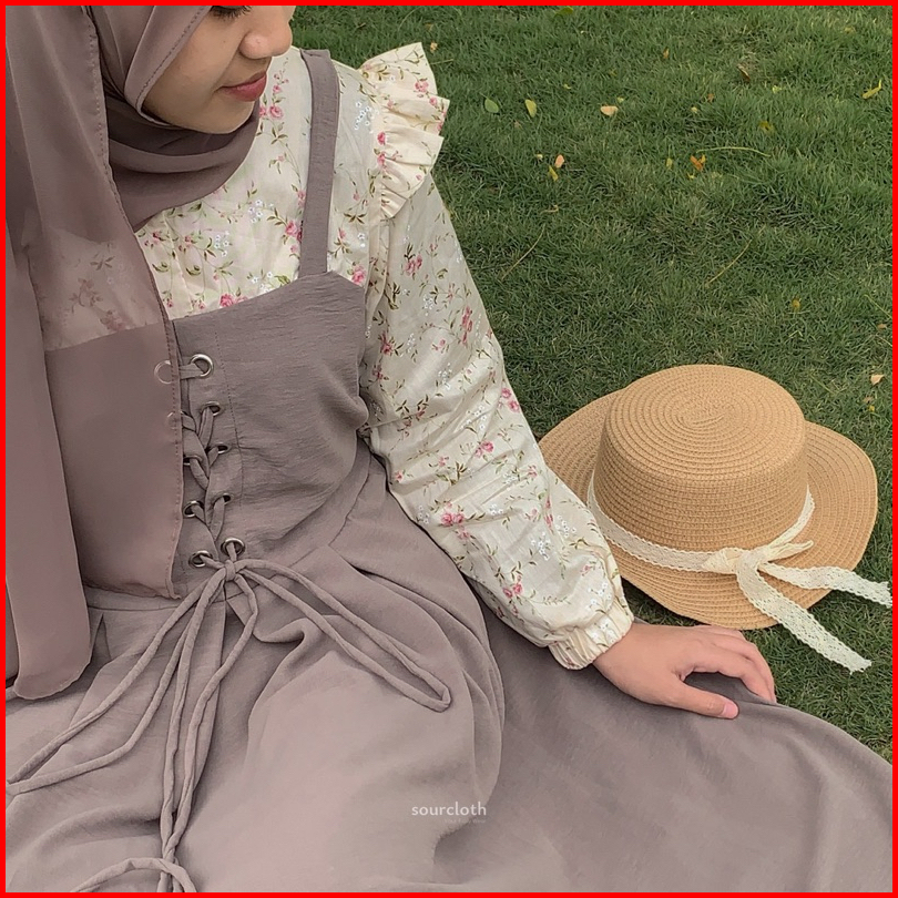 Belle Floral Dress - Gamis Vintage Cottage Core Syari Motif Bunga Busui Friendly
