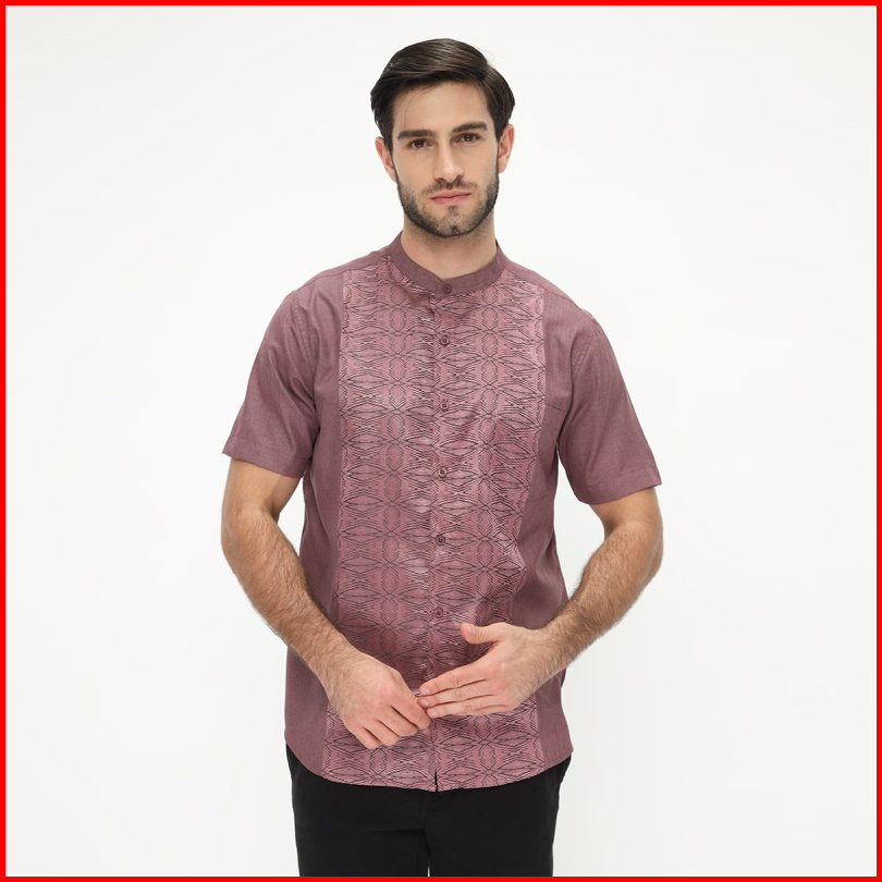 Bossqu21 Baju Kemeja Koko Pria Lengan Pendek Modern Fit Katun 33836 Ungu