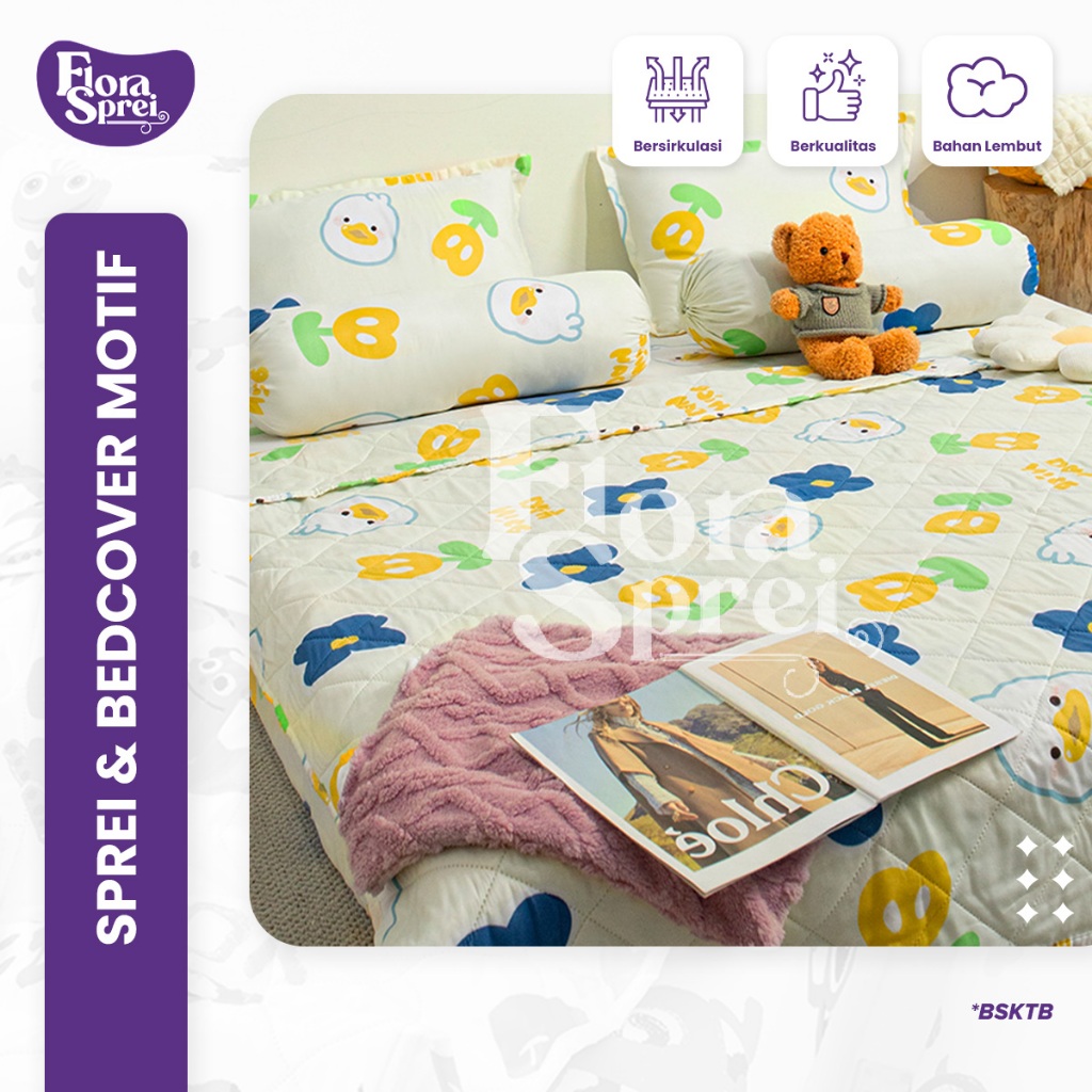 FLORA BedCover Set Sprei Set Microtex Set Sprei Selimut Sarung Bantal Guling Multi Variasi
