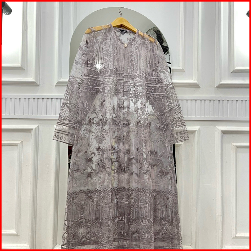 Long Outer Brukat Tile Motif Etnik Cardigan Wanita