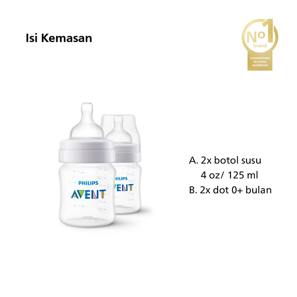 Philips Avent Classic Plus Bottle 125ml 2Pcs 0M+ SCF560/27 Botol Susu