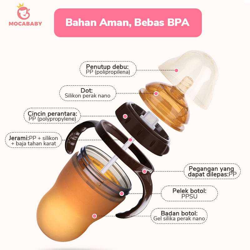 Mocababy Dot Bayi Botol Silikon Piko Bello Nano Botol Susu Bayi Dengan Sedotan Feeding Bottle Natural Nursing Bottle Den