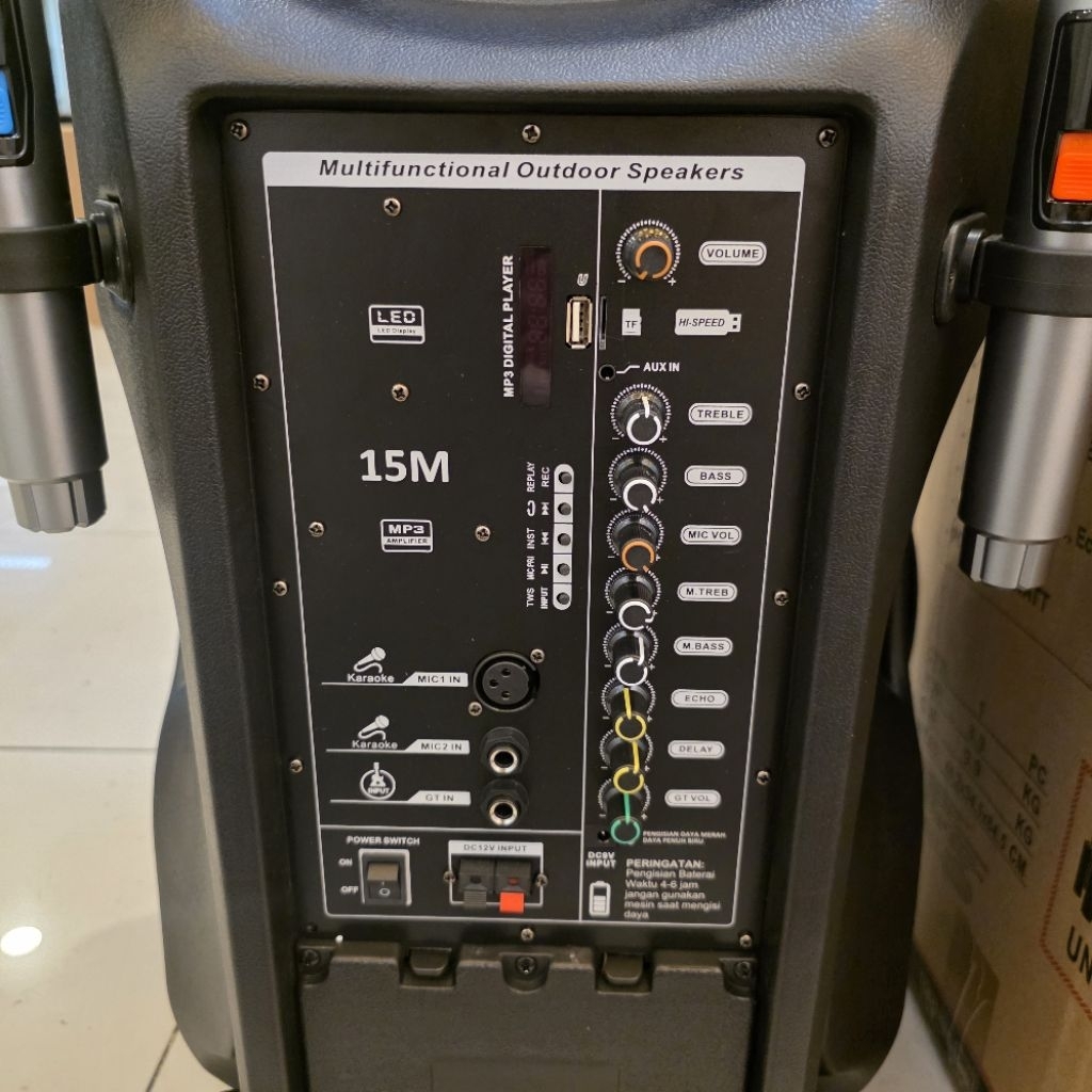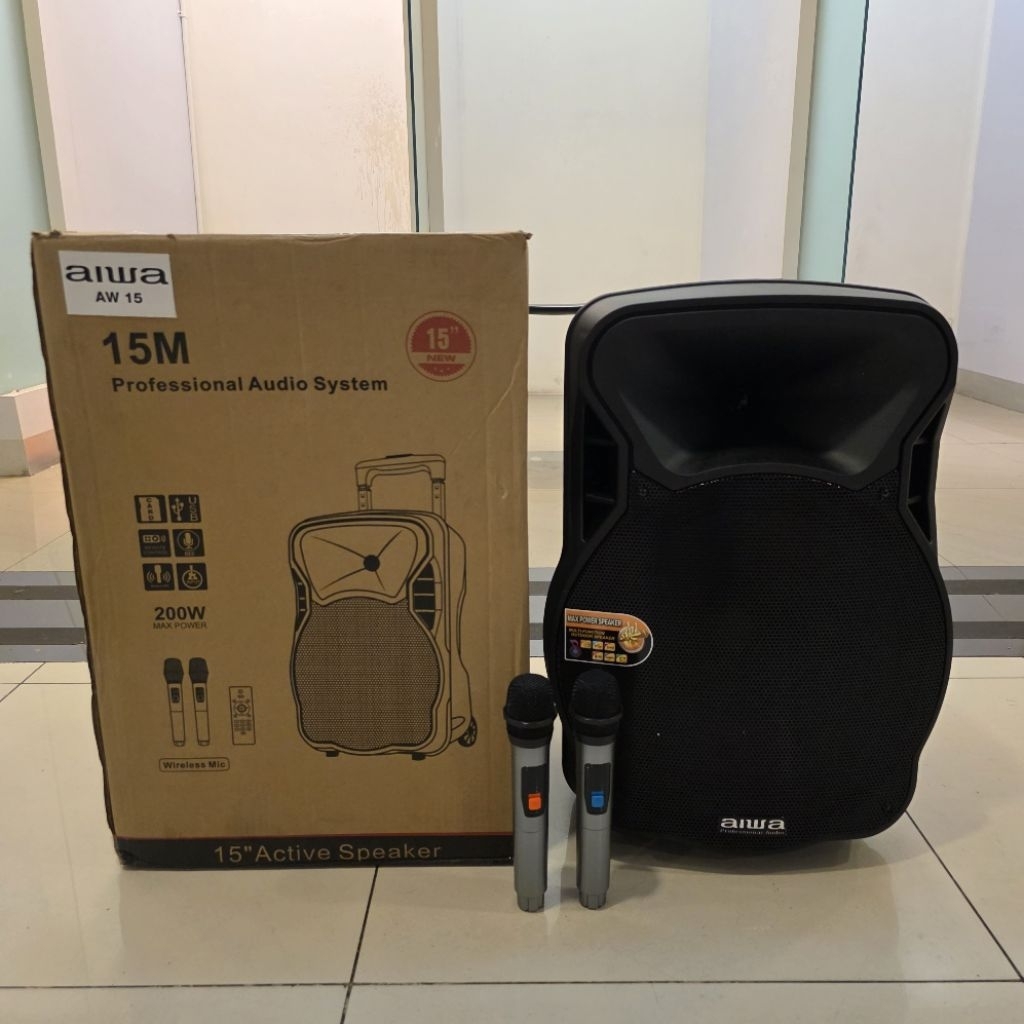 Speaker Portable Aiwa 15 inch Bluettoh usb sd isi 2 mic wirelles BONUS STEN