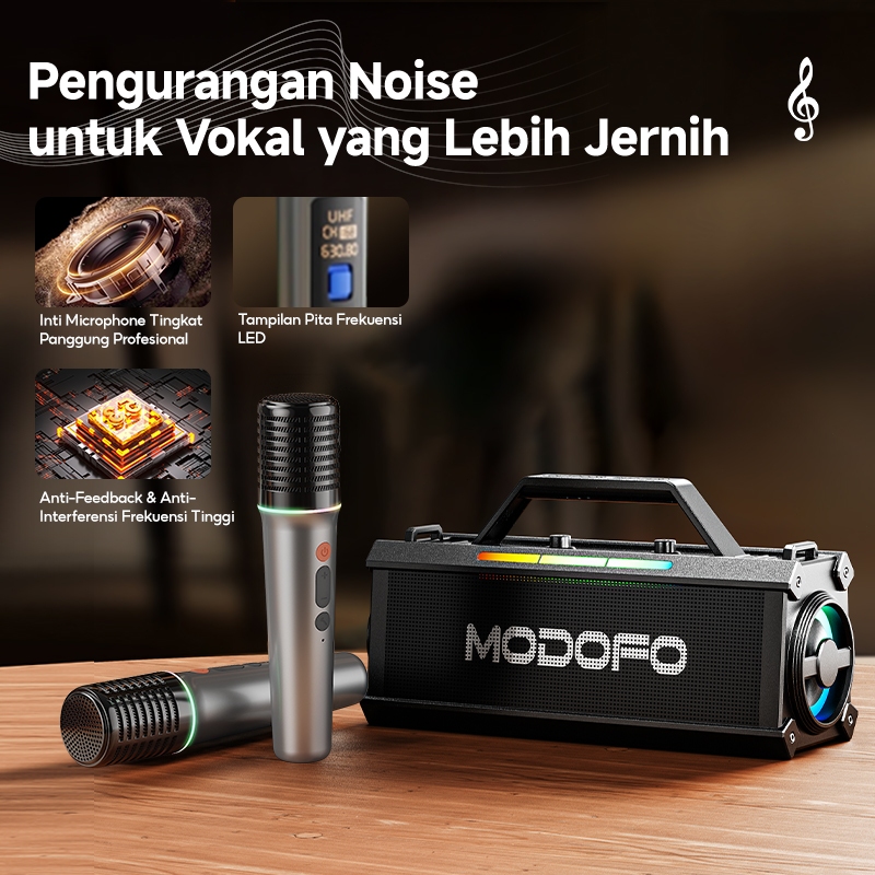 MODOFO Speaker Bluetooth Karaoke Advance 2 Mic Besar Set Lengkap Portabel Wireless Super Bass
