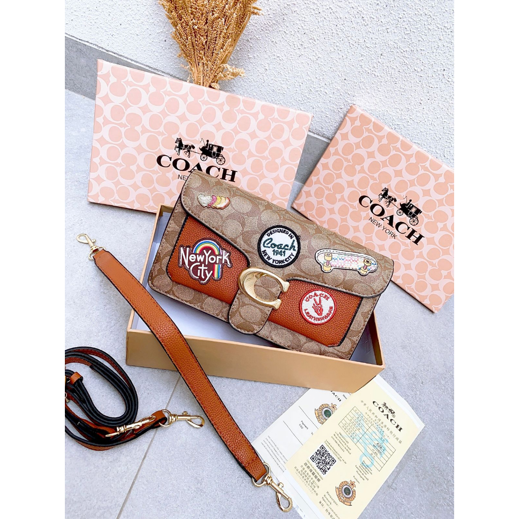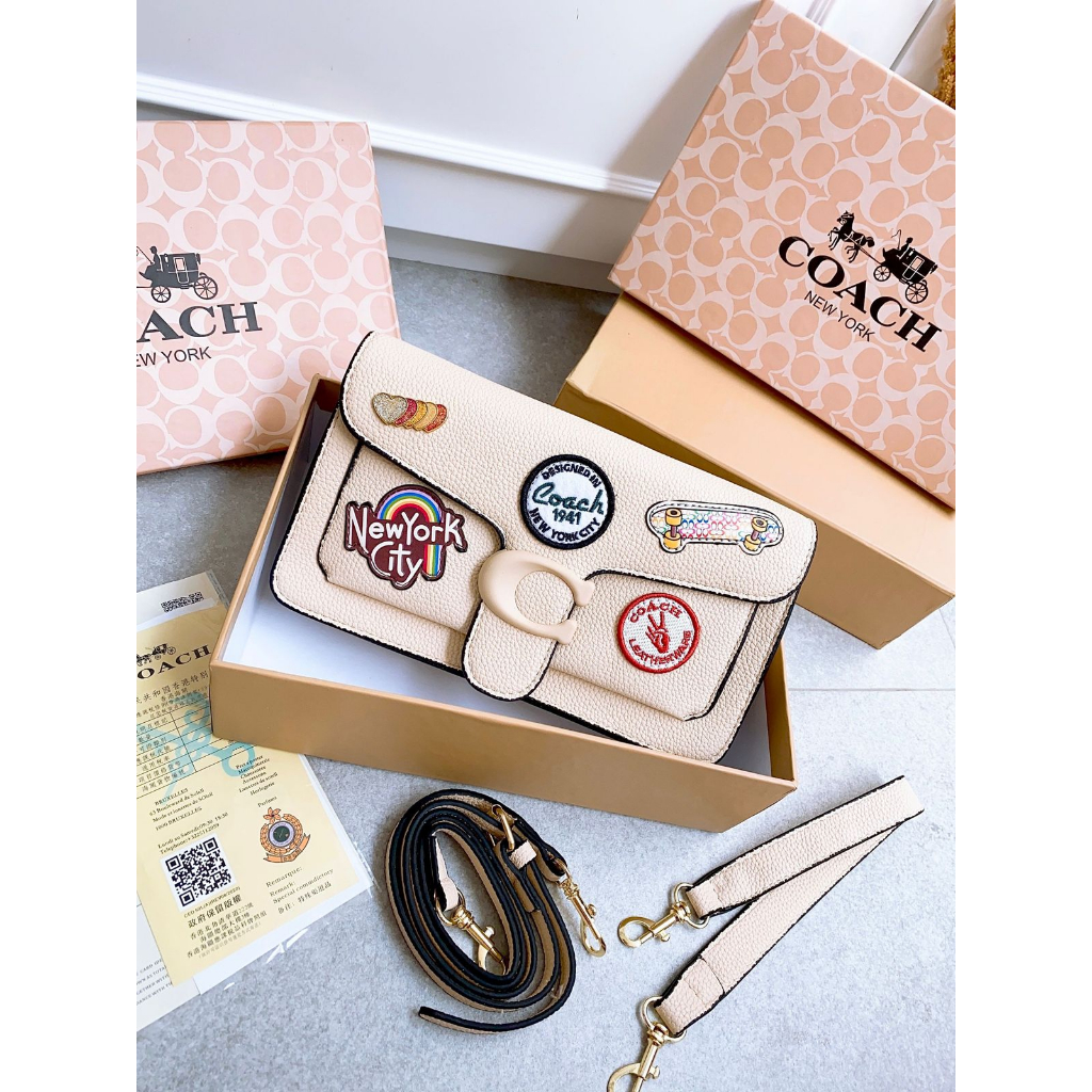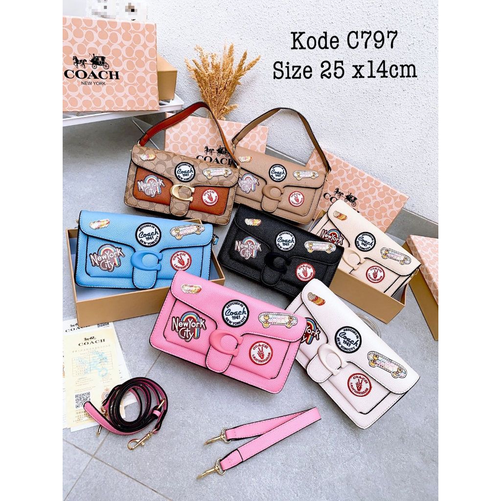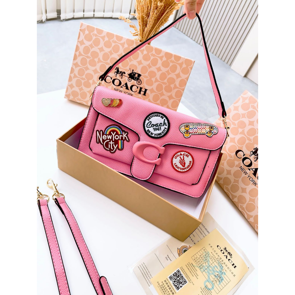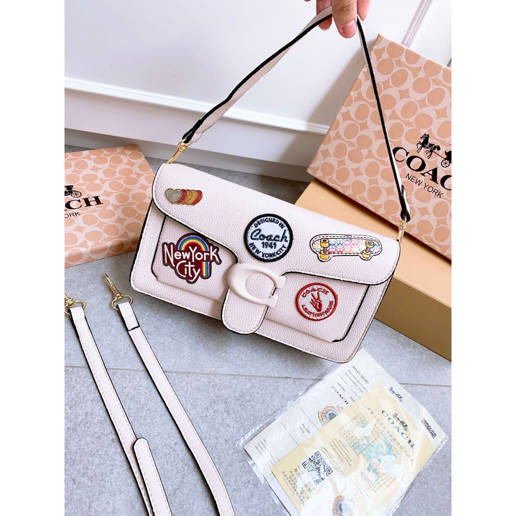 TAS SELEMPANG COACH TABBY WITH PATCHESS FREE BOX KODE C797 2 TALI , + FAKEBILL