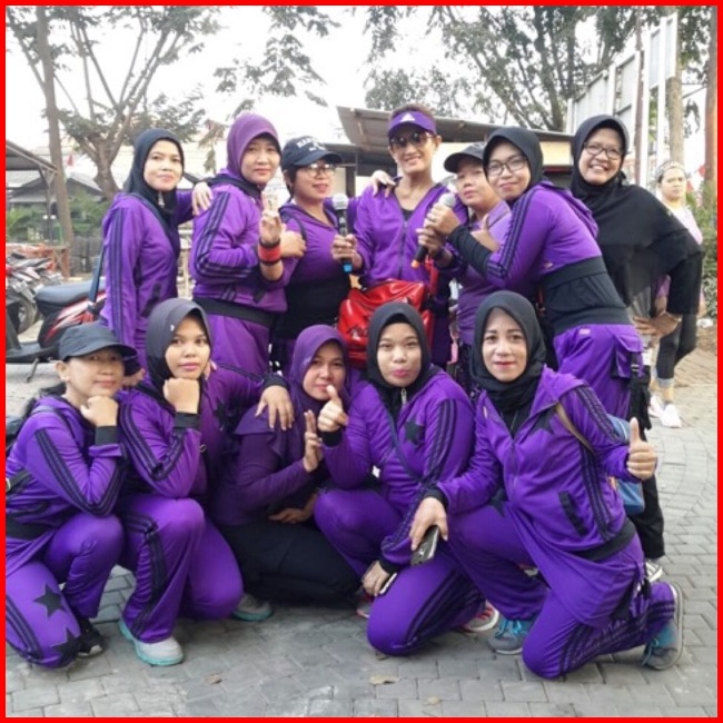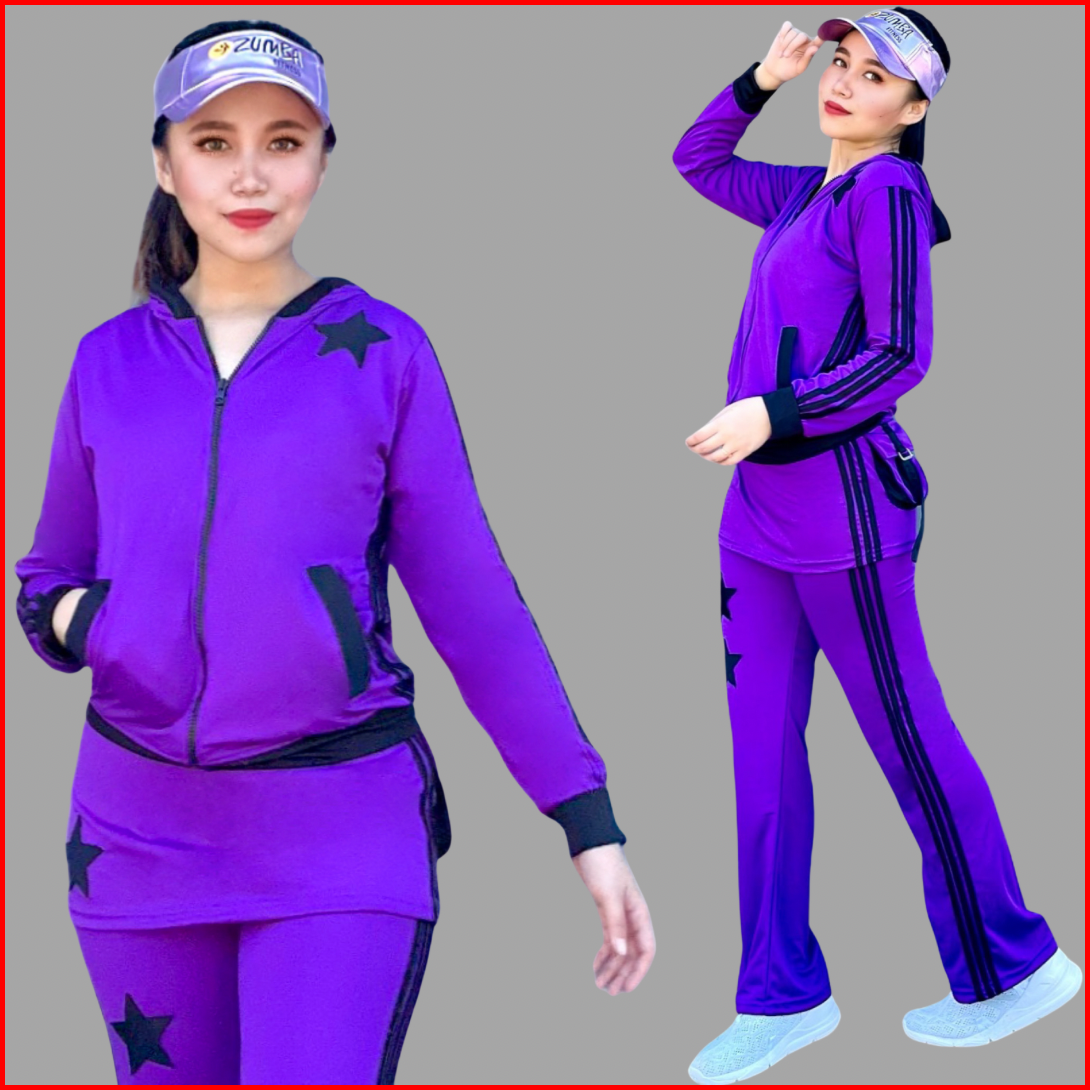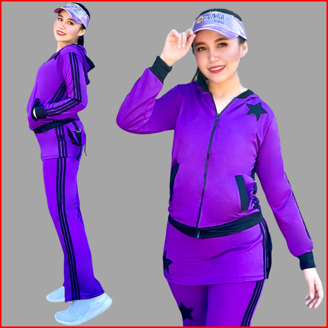 Setelan Baju Senam Lapangan Rok Ungu Hitam Zumba Aerobik Hijab Cycling Fitness Olahraga Muslimah