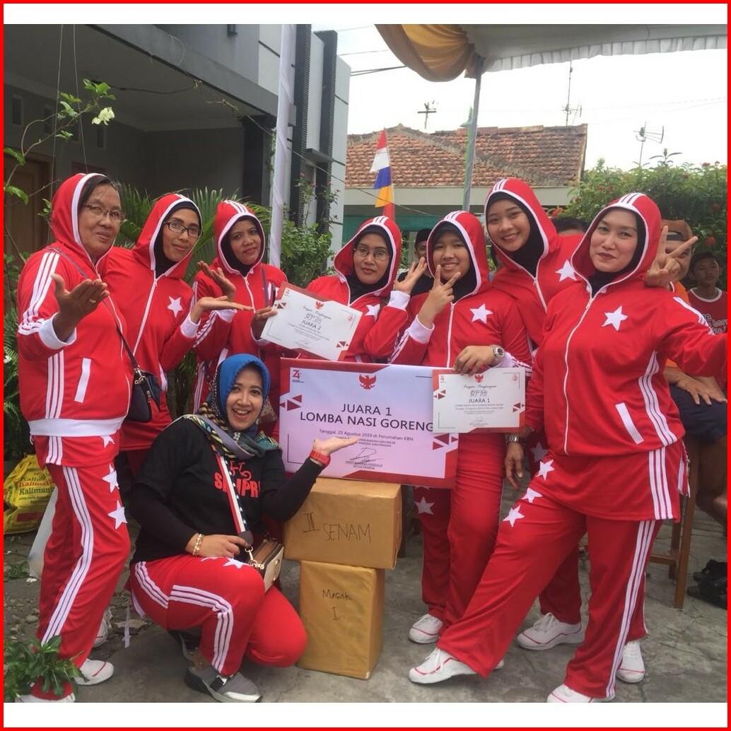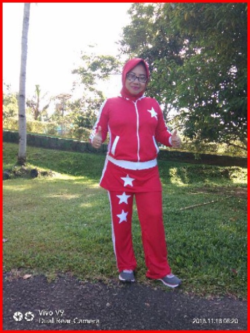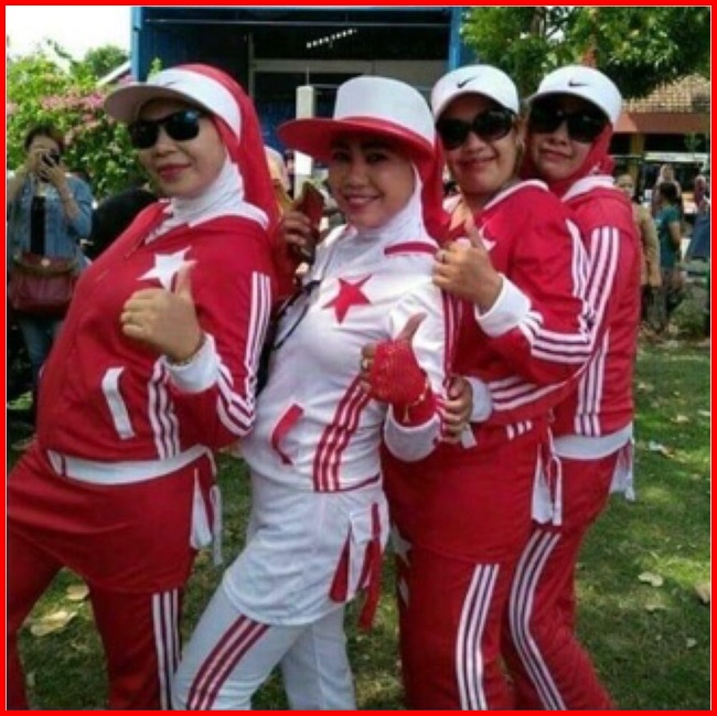 Stelan Baju Senam Aerobic Zumba Outdoor Panjang Muslimah Hijab Cycling Rok Merah Putih