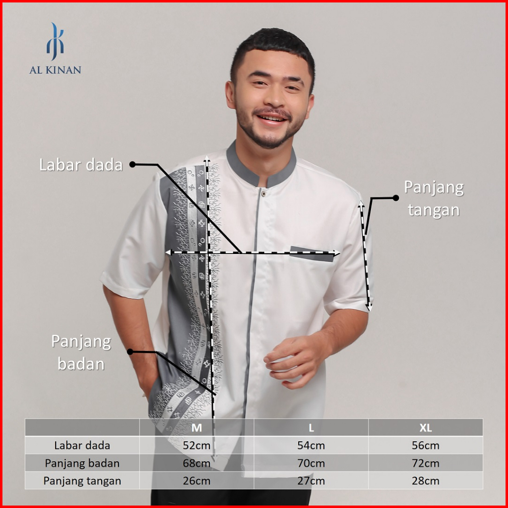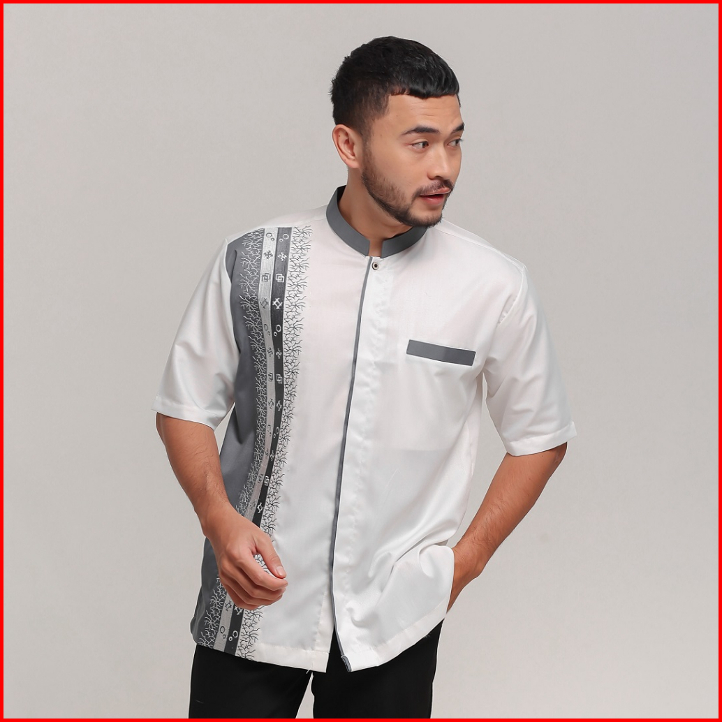 Baju Koko Muslim Pria Lengan Pendek Putih Tulang Katun Toyobo Bordir Tasikmalaya Alkinan Akt050