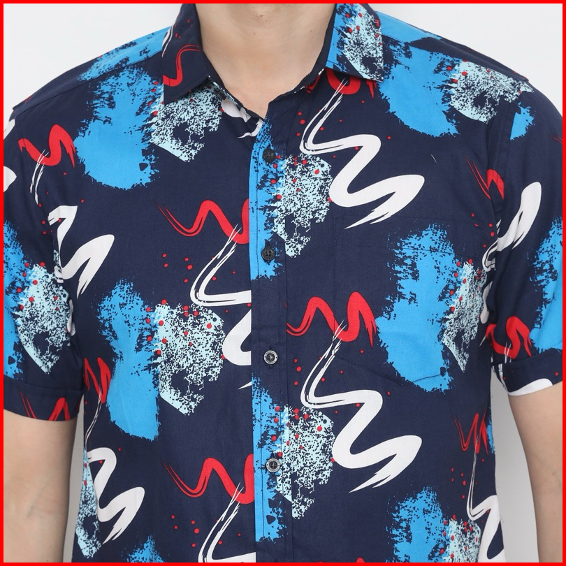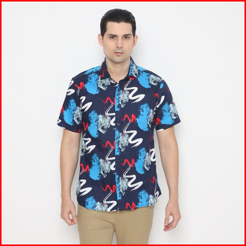 Bossqu21 Kemeja Pria Basic Print Lengan Pendek Slim Fit 33122