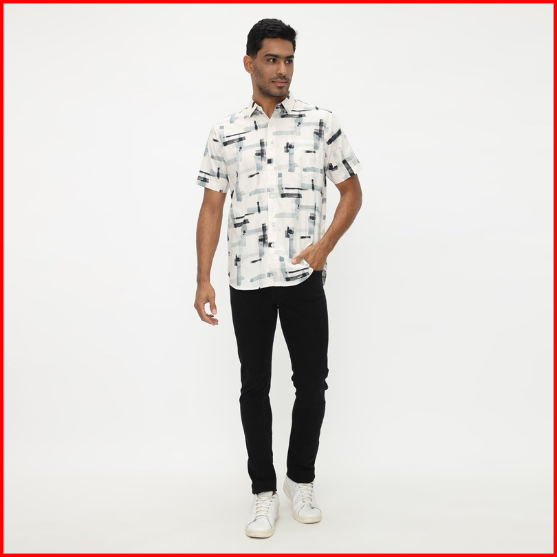 Bossqu21 Baju Kemeja Pria Lengan Pendek Motif Modern Fit Katun 33237 Abu