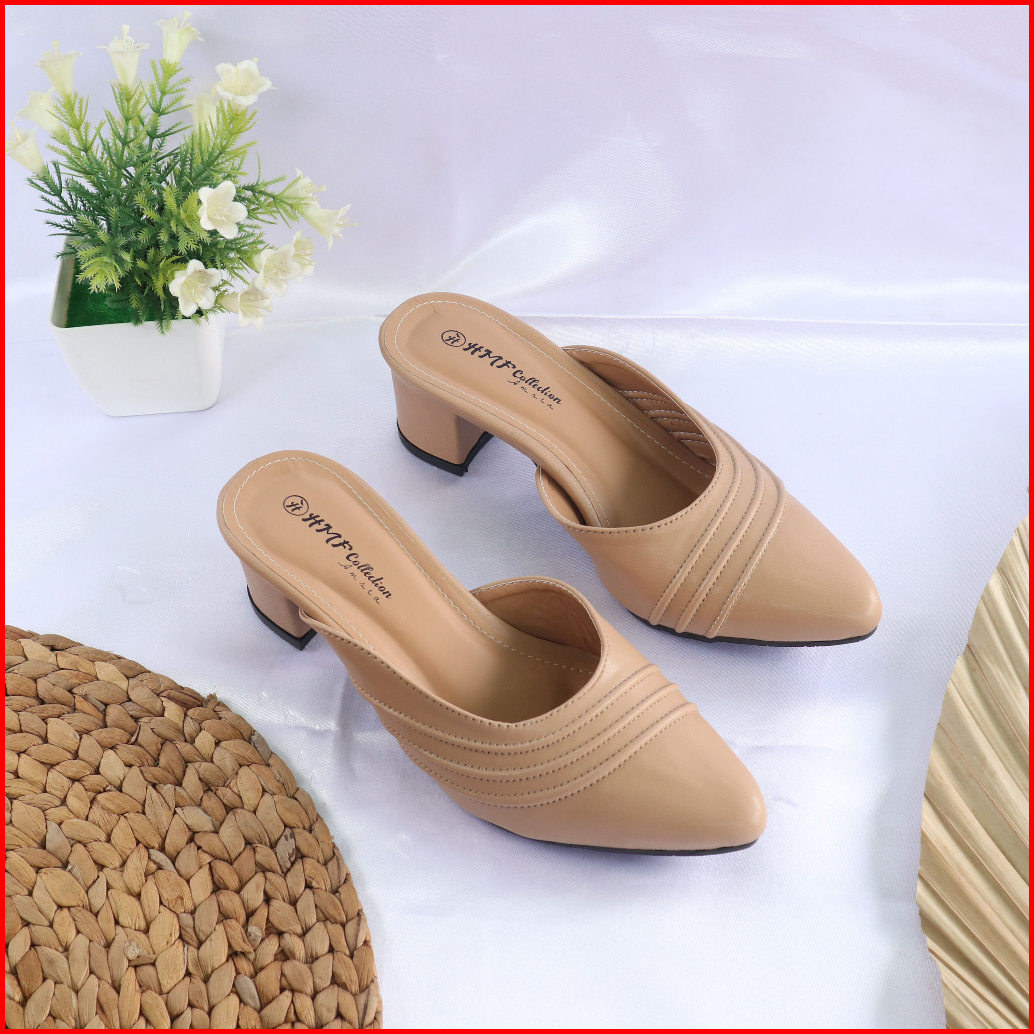 Hmf Kanari Sepatu Heels Mules Wanita Aj06