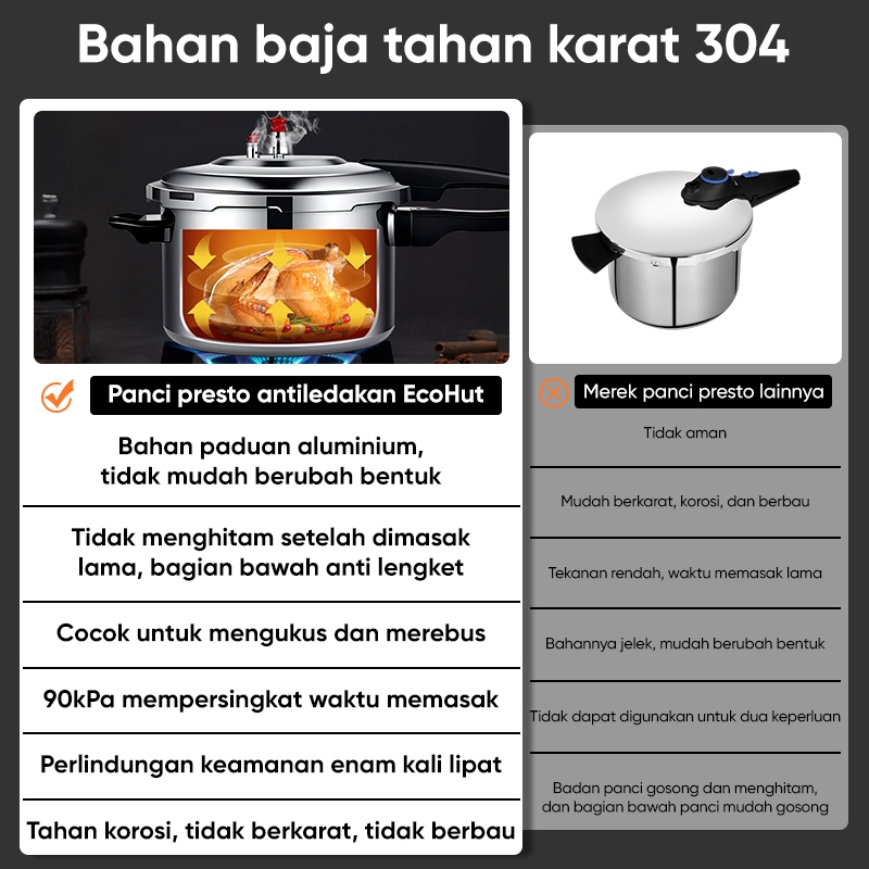 EcoHut Panci Presto Baja Antikarat 8L 10L 12L Cocok Untuk Mengukus