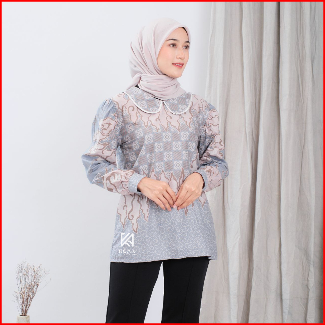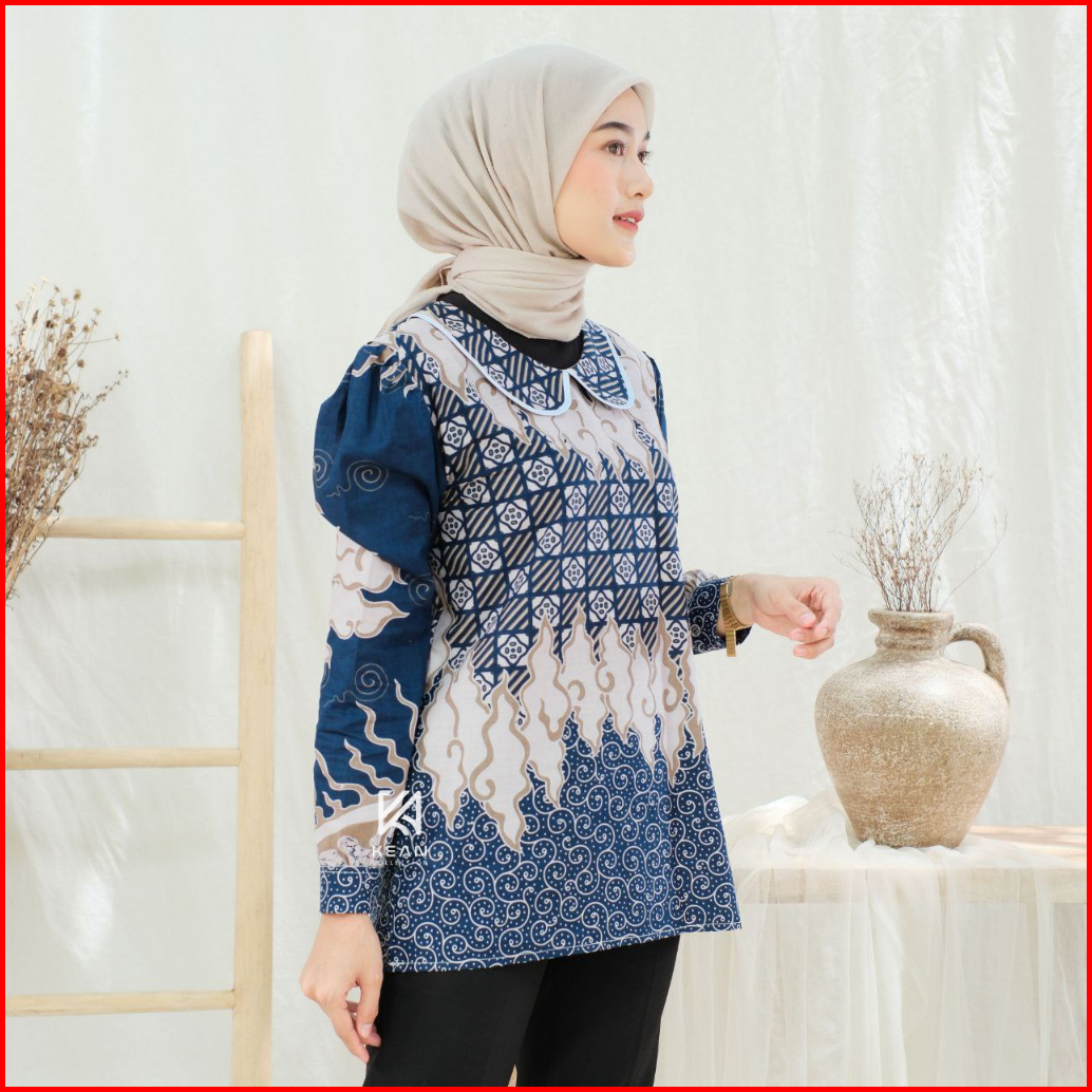 Kean Atasan Batik Wanita Blouse Batik Puffy Peplum Motif Saroja Batik Baju Kerja Wanita Modern