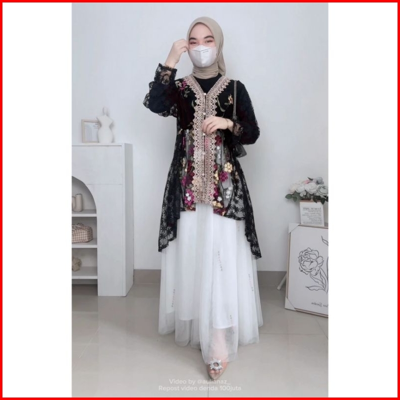 Maru Outer Tunik Tille Brukat Cardigan Tille Brokat Lengan Panjang Kebaya Tunik Atasan Outher Brukat Outer Brokat Bordir