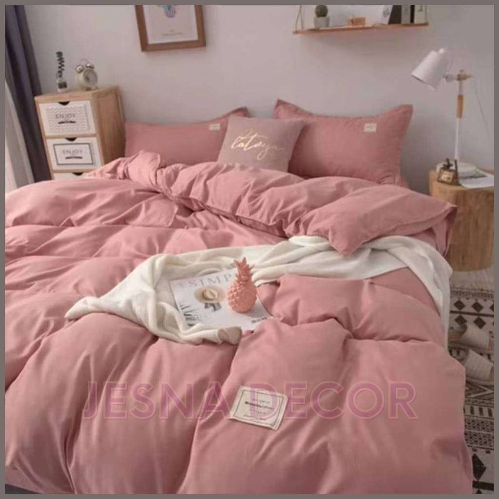 BEDCOVER SET POLOS / Bedcover + Sprei Motif Polos Satu Warna