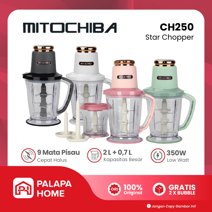 Mitochiba Chopper CH 250 2 Liter 9 Mata Pisau | Blender Daging Mito CH250 Coper Bumbu Food Processor