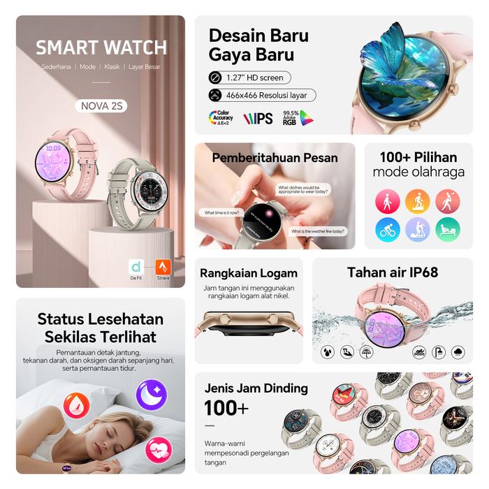 [Mall] MOREINWEAR NOVA2S SMARTWATCH DENGAN LAYAR 1,27 INCI, DESAIN RINGKAS COCOK UNTUK WANITA, BODI PADUAN SENG, TAHAN A