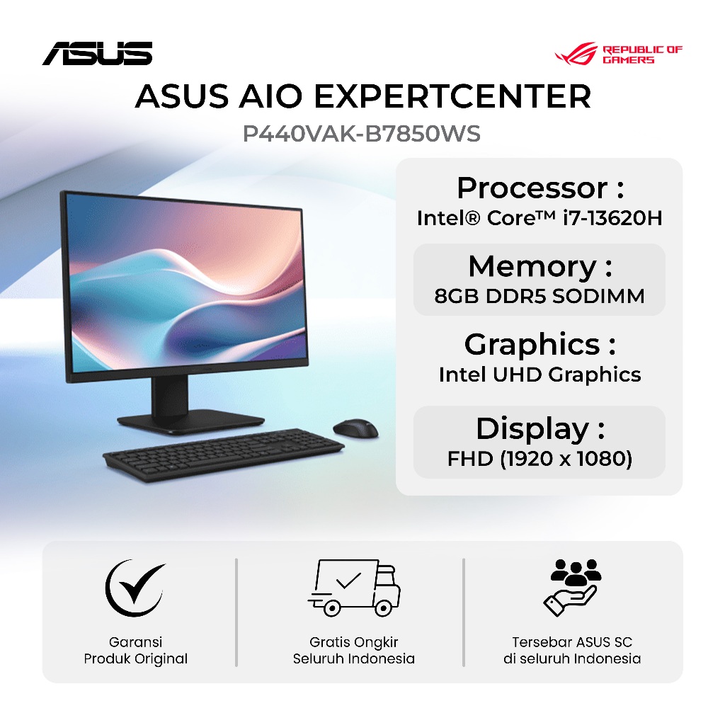 ASUS AIO EXPERTCENTER P440VAK-B7850WS INTEL CORE I7 13620H 8GB 512GB WINDOWS 11 +OFFICE 23.8 INCH FHD