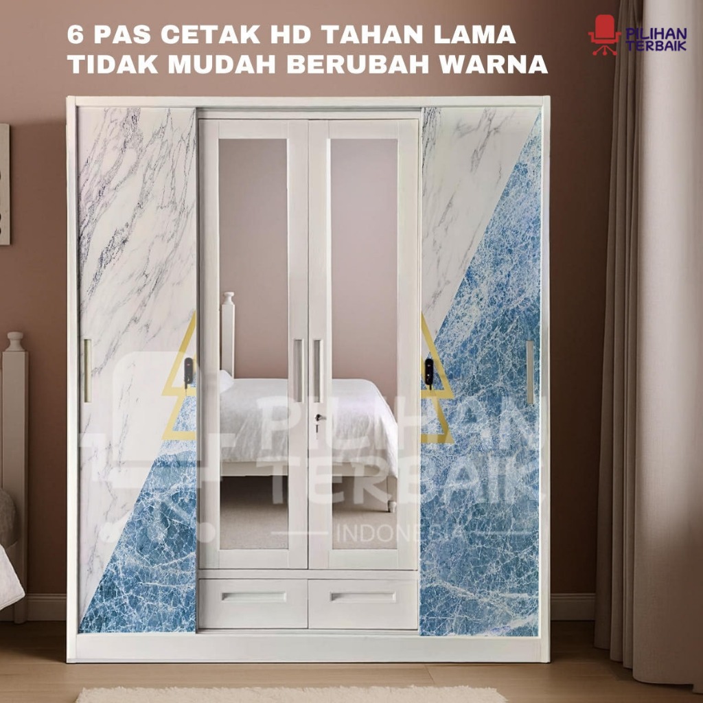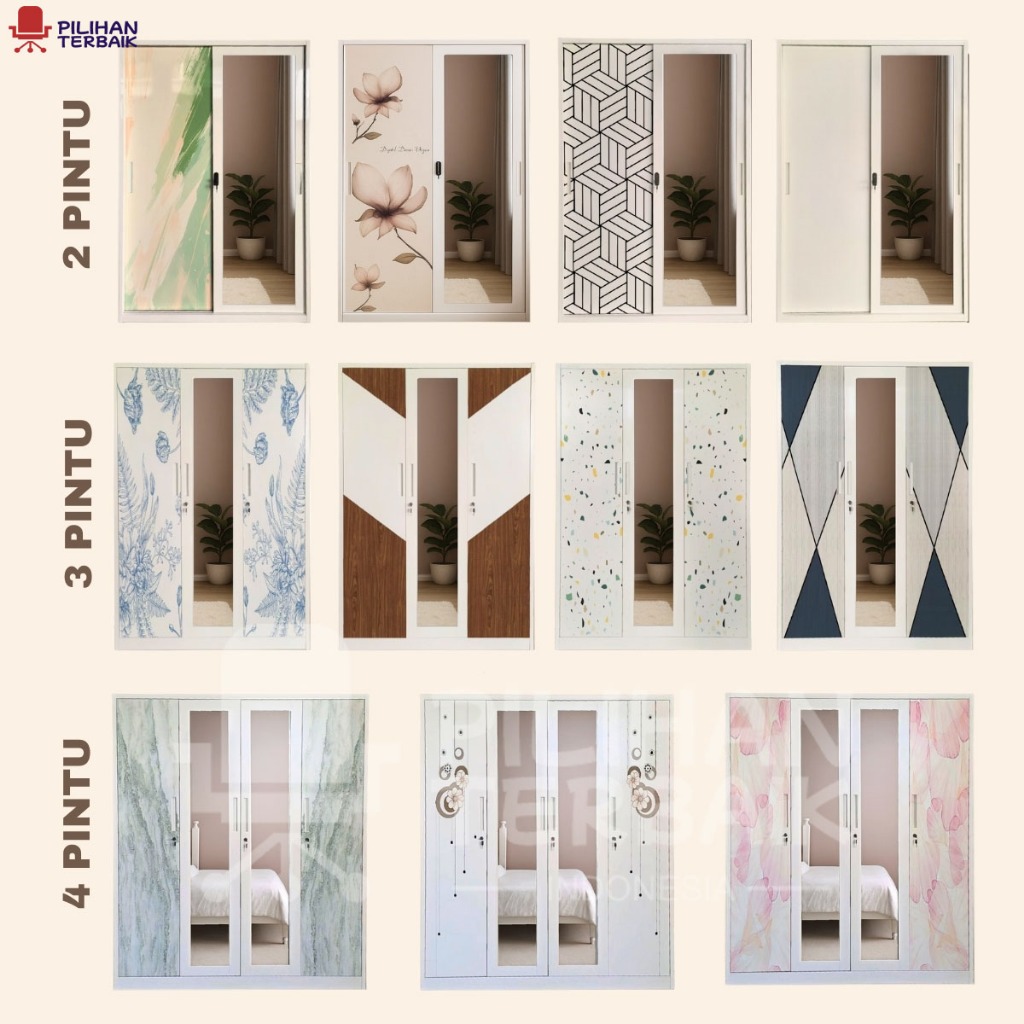 Lemari Pakaian Besi 4 Pintu Sliding Jumbo | 160cm 2 Laci+ 1 Batang Rak Baju