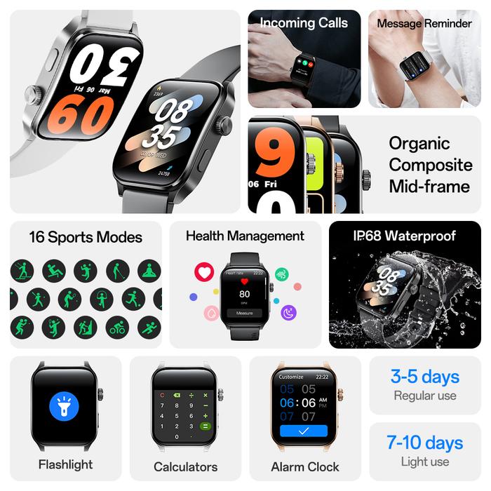 [Mall] AOLON CURVE3 SMART WATCH NEW 22G STRAP SIZE| ZINC ALLOY FRAME | RUNNING PACE | IP68 | 1.93-INCH IPS 3D CURVED SCR