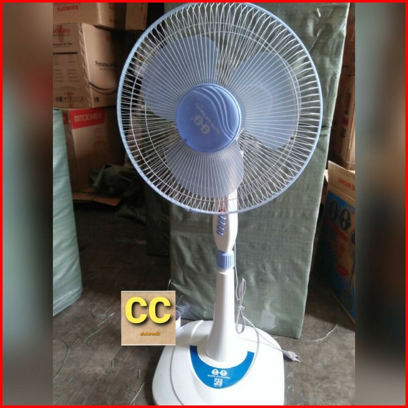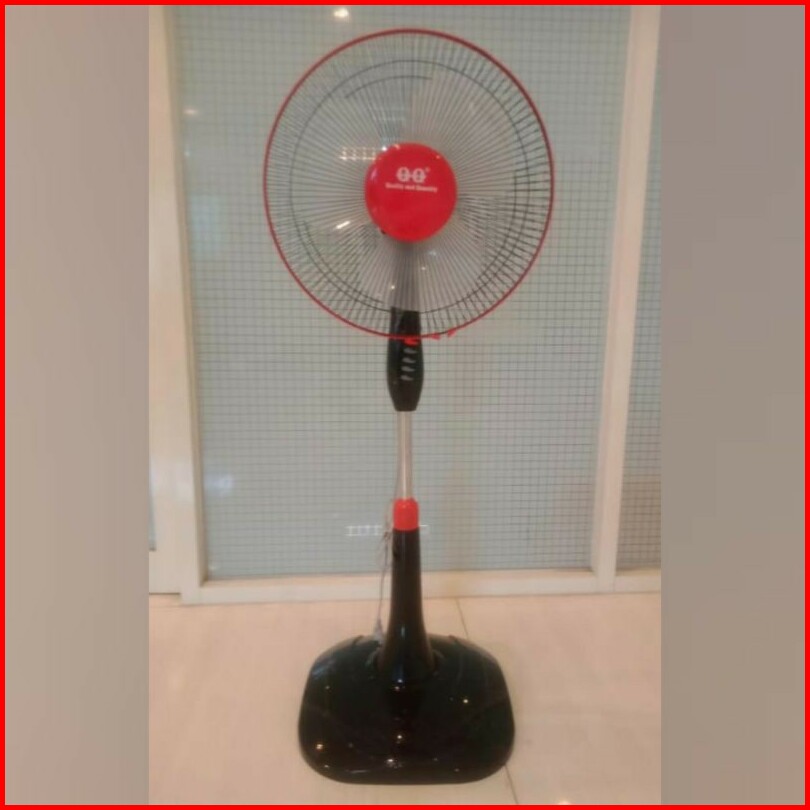 Standfan Qq 16inc Kaki Bulat Kipas Angin Berdiri Qq Putih Dan Hitam Dan Baling Besi