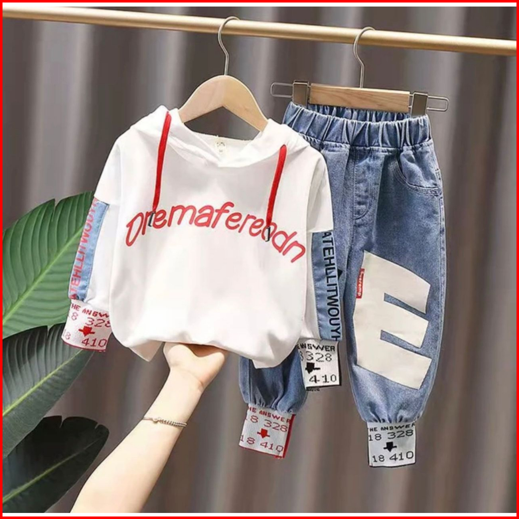 Setelan Anak 1-5 Tahun Dremaforeo Denim Setelan Anak Perempuan Oneset Hoodie Sweater Celana Denim Anak Cewek Cowok Baju