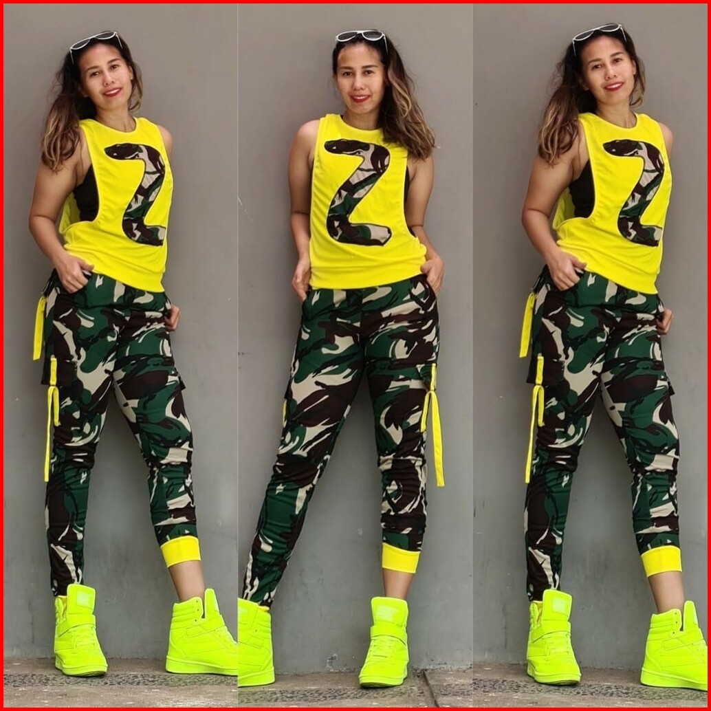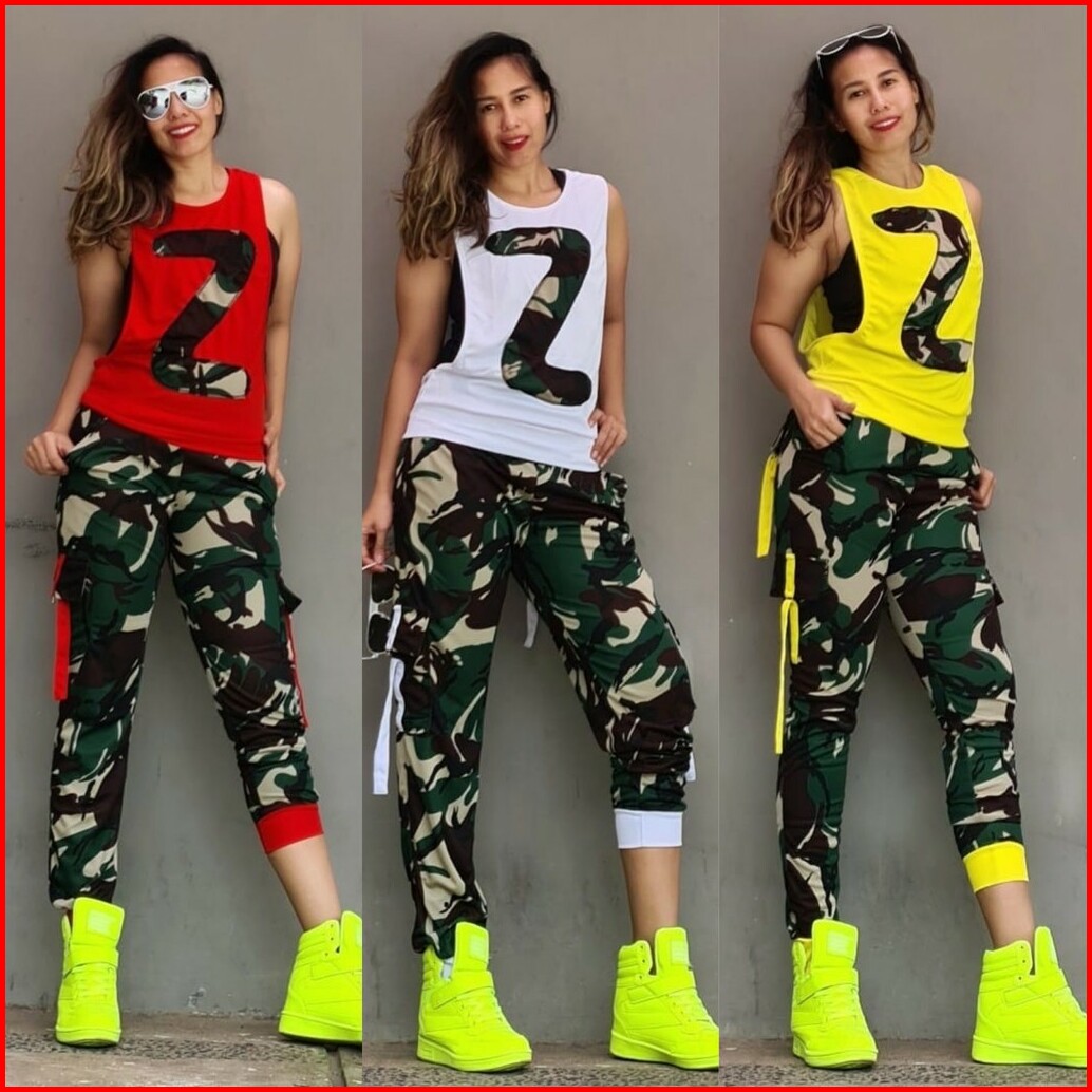 Baju Senam Aerobic Zumba Set Tanktop Z Jogger Army