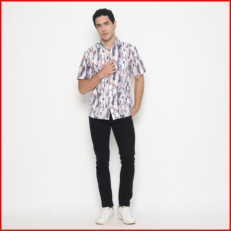 Bossqu21 Baju Kemeja Pria Lengan Pendek Motif Slimfit 33110 Ungu