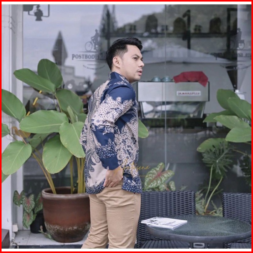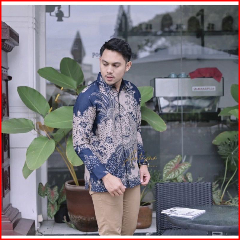 Aswangga Navy Kemeja Batik Pria Lengan Panjang Full Furing Katun