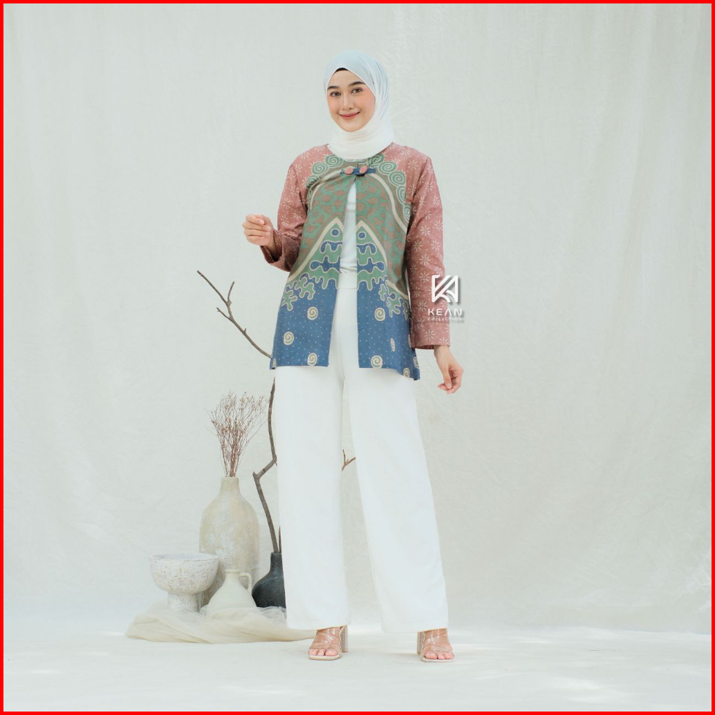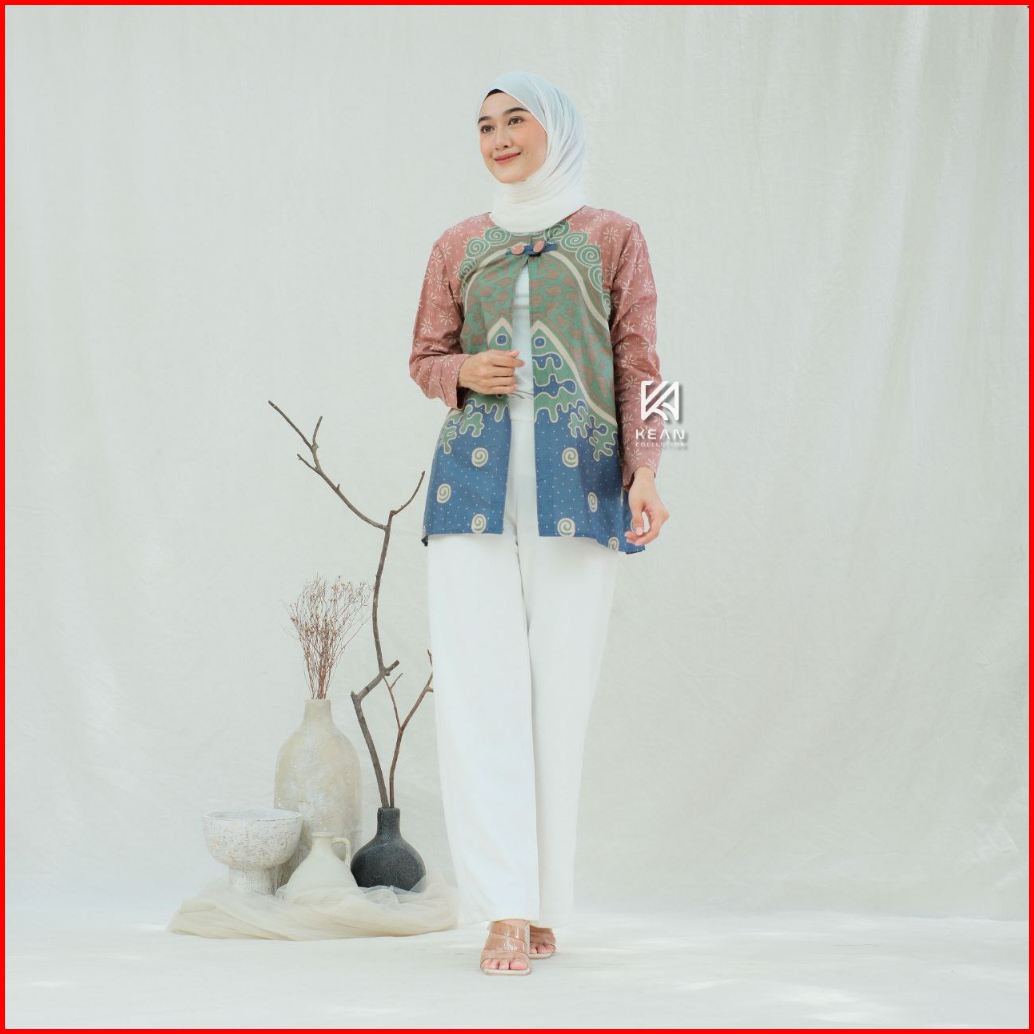 Kean - Batik Wanita Modern Lengan Panjang Erysa Bolero Blouse Batik Kerja Kantor Kekinian Terbaru