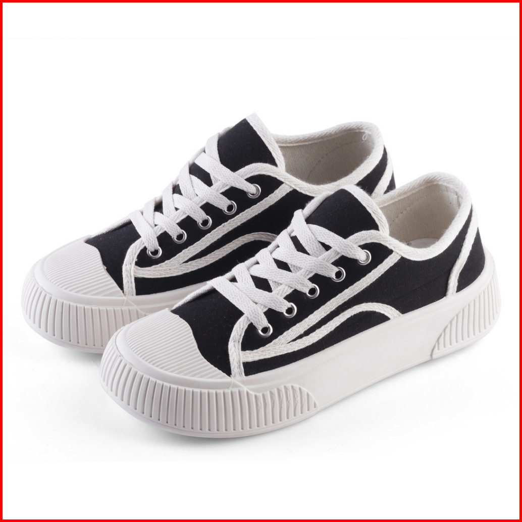 Yeloova Sepatu Kanvas Wanita Korea Sport Shoes Sepatu Sneakers Casual Wanita Platform Breathable Shoes Hitam Free Box