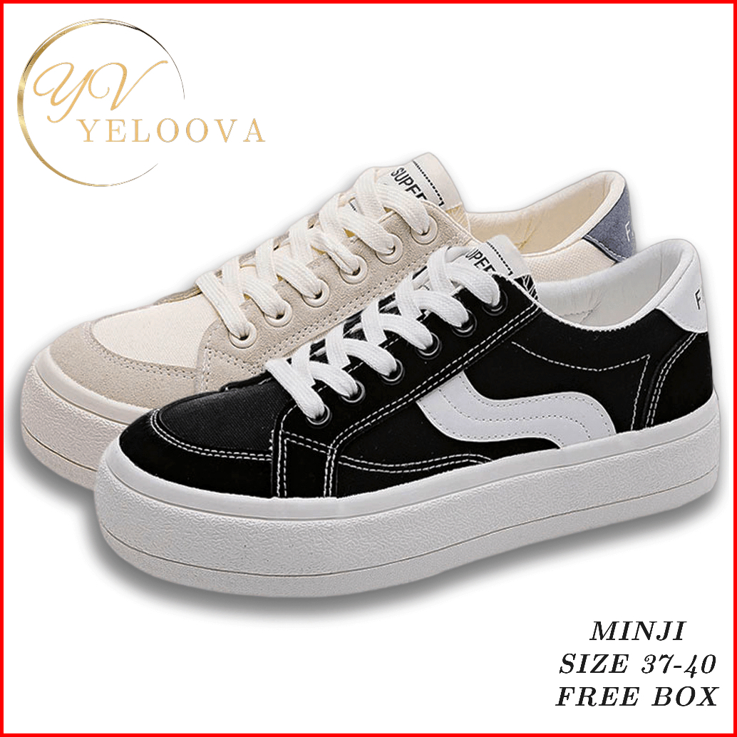 Yeloova Minji Sepatu Canvas Wanita Casual Bertali Sepatu Kerja Wanita Kanvas Free Box