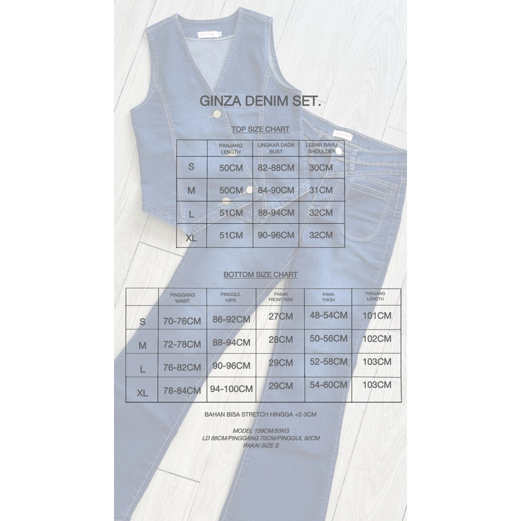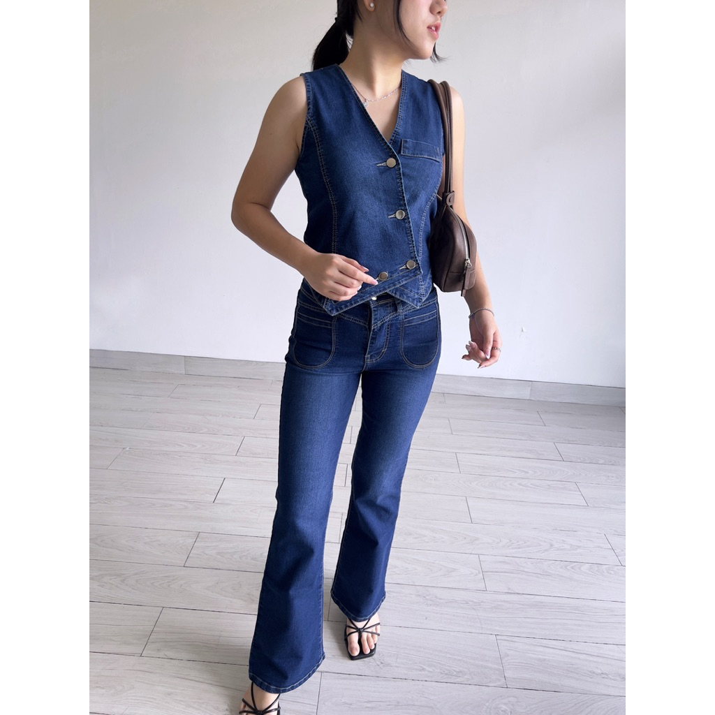 Klavee - Ginza Denim Set / Setelan Vest Wanita Celana Jeans Cutbray Women Fashion Pakaian Wanita One Set
