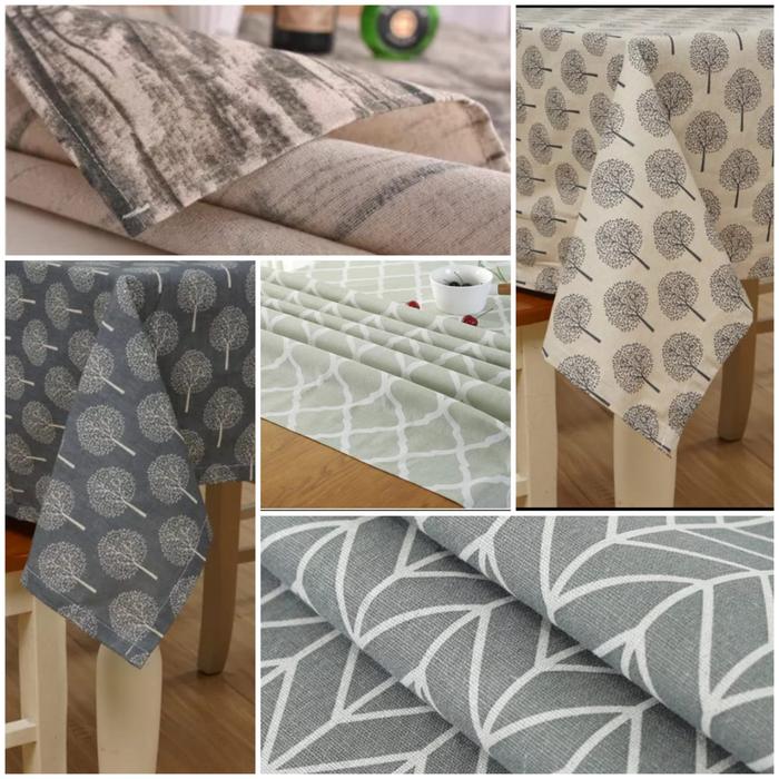 Taplak Meja Makan Modern Estetik 2 sisi Kain Bahan Kanvas Linen ukuran 120x32 cm & 180x32 cm - clover 120x32cm