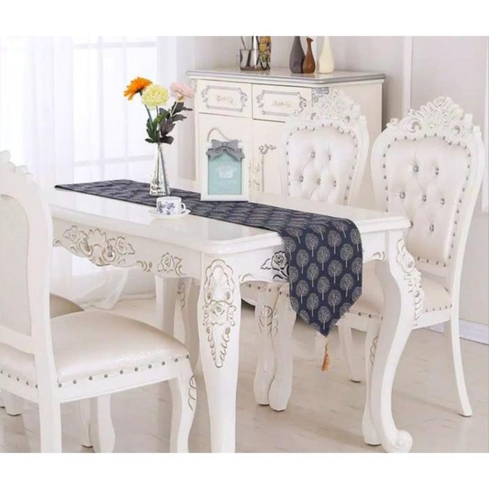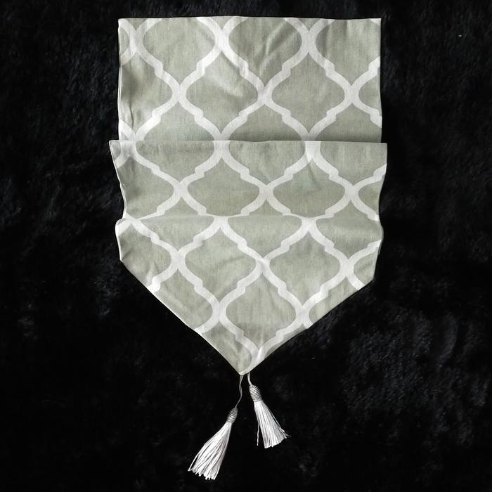 Taplak Meja Tamu 2 Sisi Kanvas Linen Motif Simple Modern Elegan - clover 120 x 32 cm