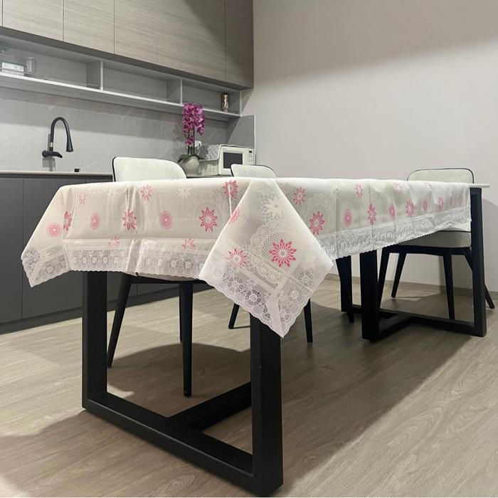 Taplak Meja Makan Renda PVC Printed Tebal Motif Cantik Modern - vilian 183 x 137 cm