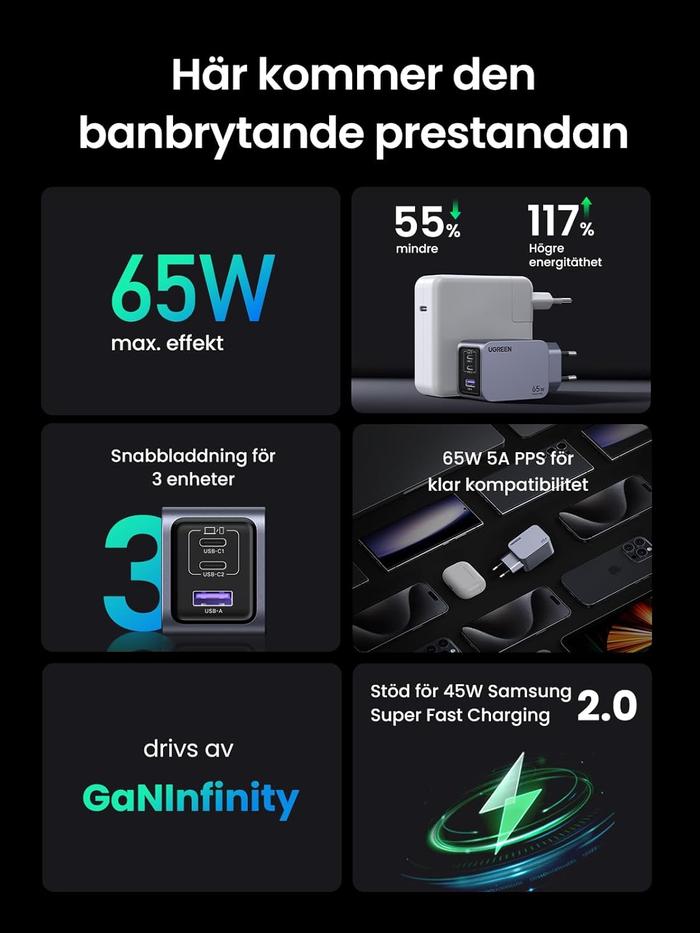 UGREEN Charger GAN NEXODE PRO Mini Size PD Type C Fast Charging 65W