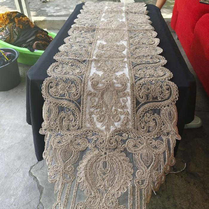TAPLAK MEJA TURKY/TAPLAK MEJA TAMU/TABLE RUNNER/TAPLAK BUFET MEWAH ELEGANT LUXURY PREMIUM Vintage - CREAM 40 x 150 CM
