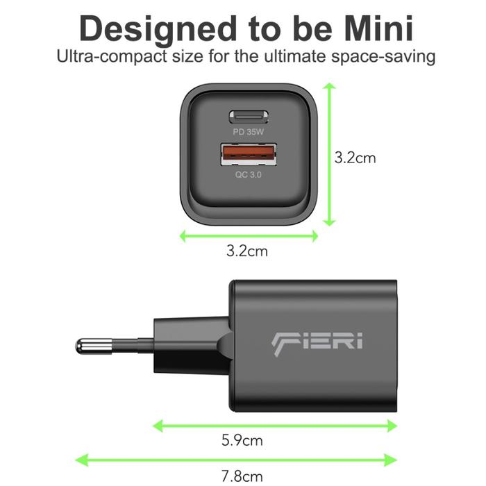 Fieri Charger 35 Watt Mini Design Smart+ Dual Port GAN III PPS PD QC