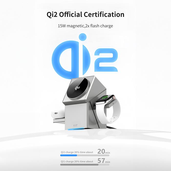 KiiP Wireless T2 3in1 Wireless Charging Station Fast Charging 15W Qi2