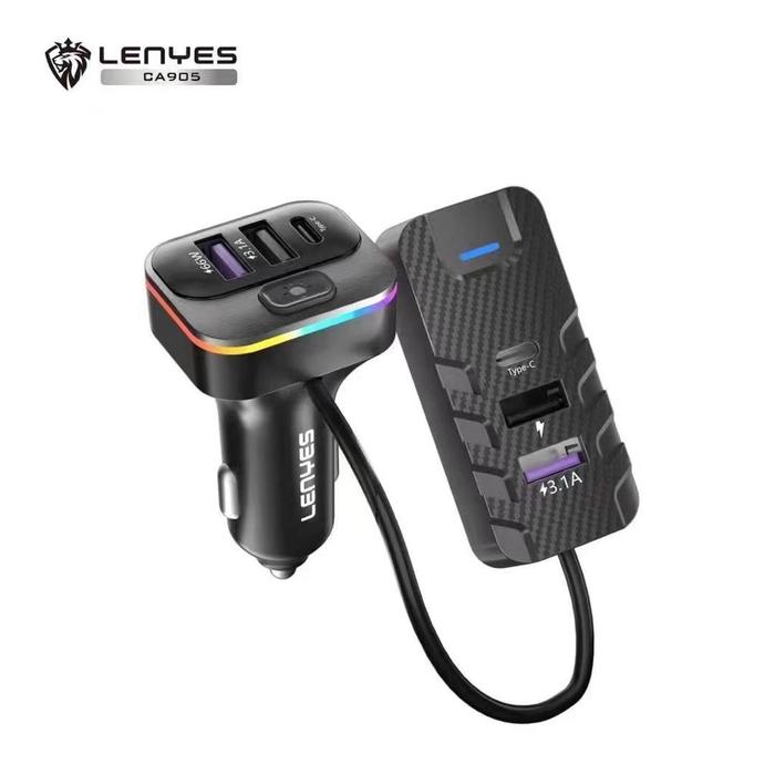 LENYES CA905 81W RGB Light Car Charger Mobil Fast Charging 6 Port Extended Type C USB
