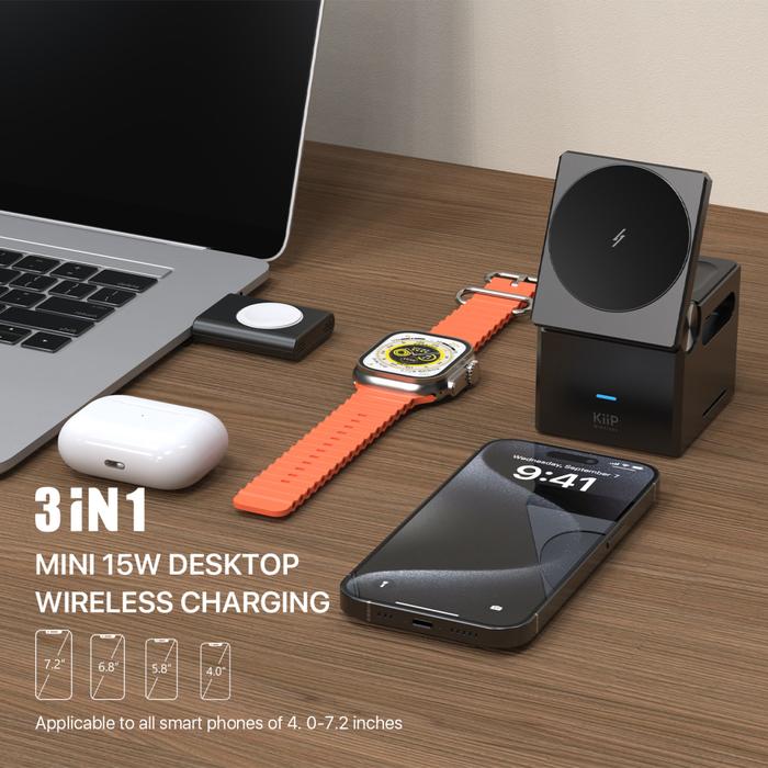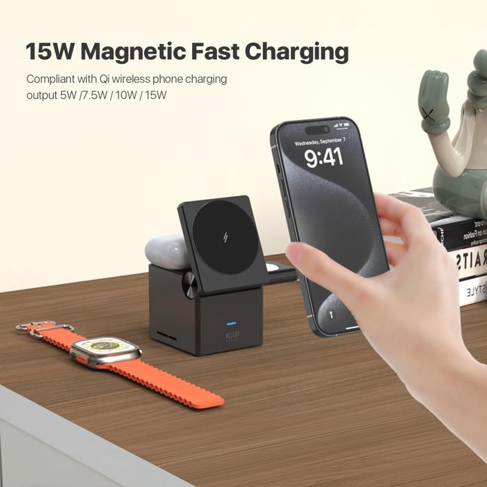KiiP Wireless T1 Pro 15W Fast Charging Magnetic 3IN1 Foldable Magsafe Charging Station
