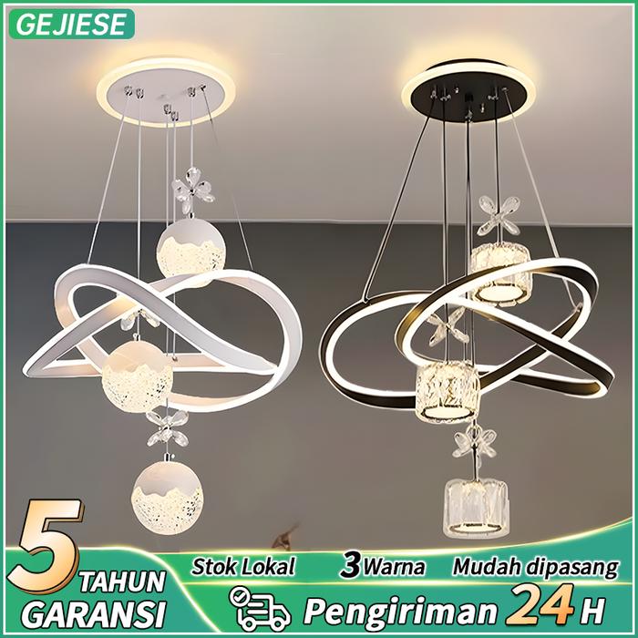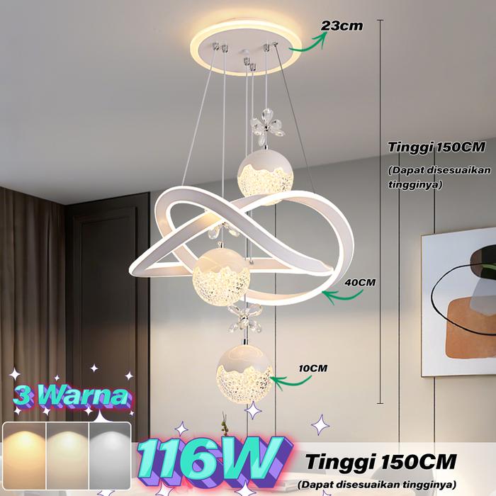 Lampu Gantung Kristal Modern 3Warna 72W LED Lampu Gantung Ruang Tamu Minimalis Kamar Tidur Hias - Putih+Remote