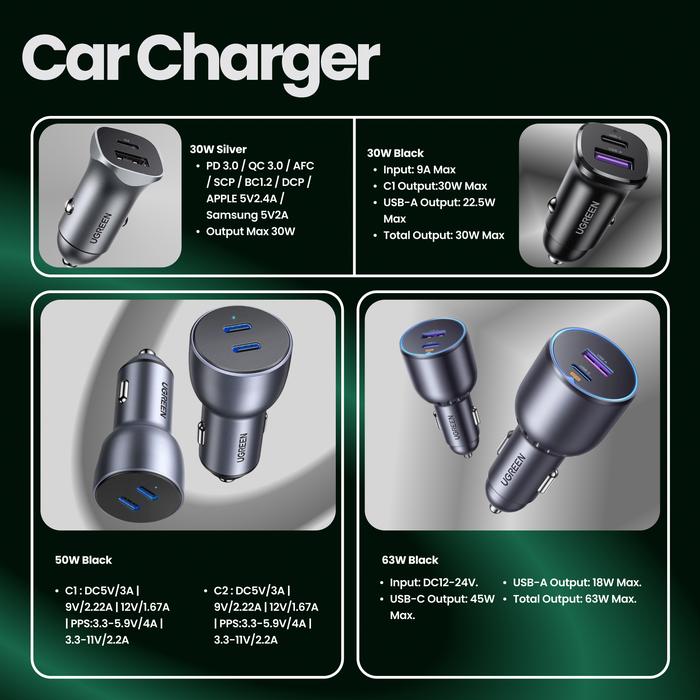 UGREEN Charger Mobil Fast Charging USB C for iPhone 16 15 14 13 12 11 Car Charger